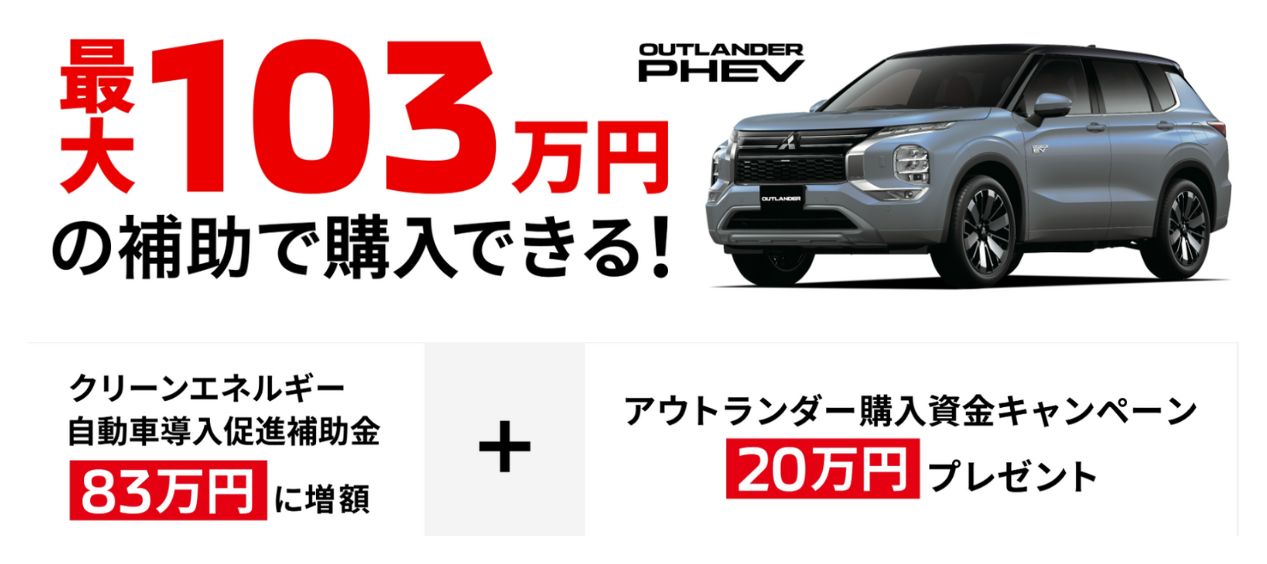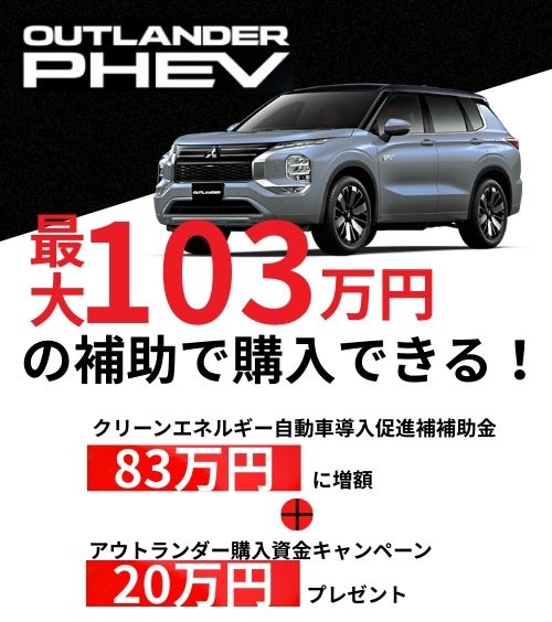 アウトランダーPHEVが””最大103万円””の補助で購入できる!!