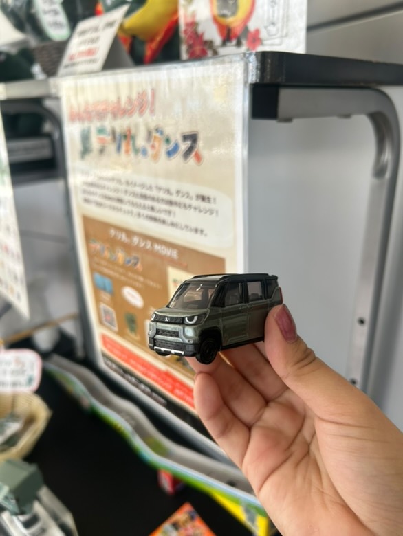 現在、ショールームにてデリカミニのトミカを2種類飾っています♪