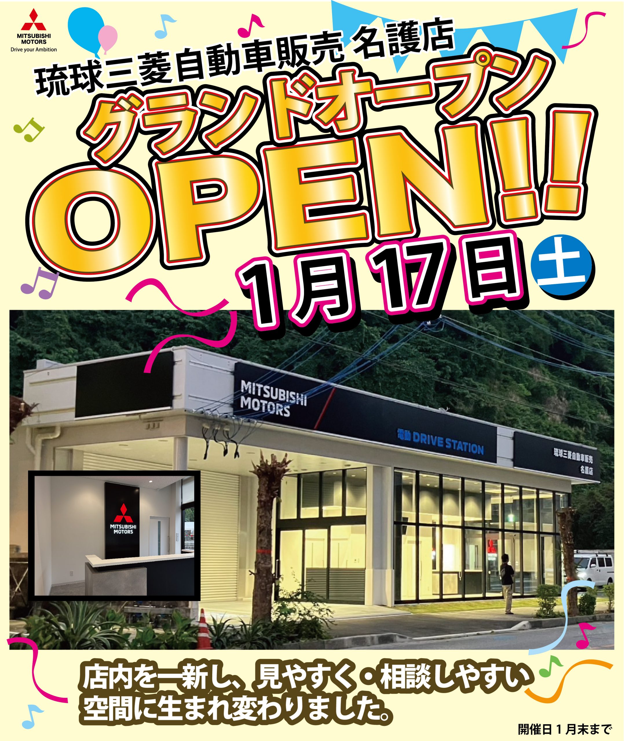 琉球三菱名護店リニューアルグランドオープン開催!1月17日(