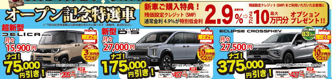 新車は、名護にちなんだオープン記念特別価格にてご用意いたしました。