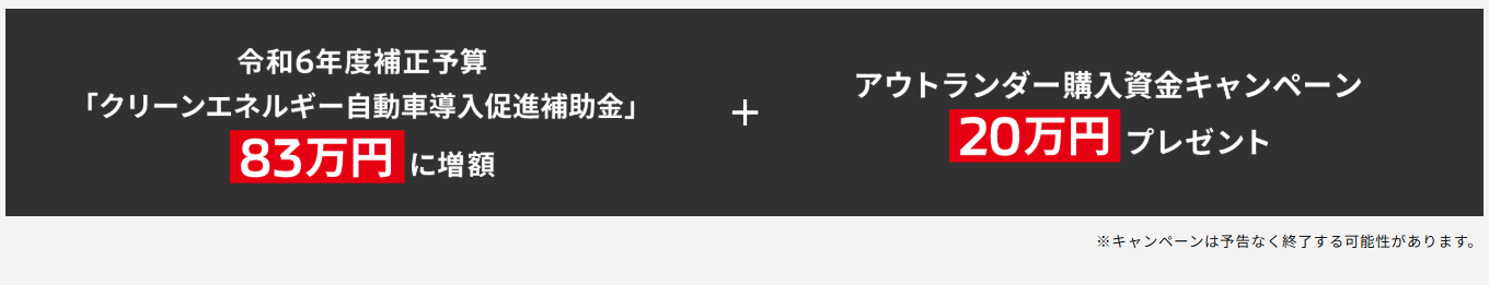 三菱自動車の アウトランダーPHEV、エクリプスクロスPHEVは、国の補助金対象車です。 さらに、地方自治体の補助金やエコカー減税など様々な優遇策が受けられます。 詳しくは、三菱自動車のお店の営業スタッフにおたずねください。